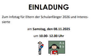 Die Eichenäcker-Schule lädt die Eltern der Schulanfänger 2026 und alle Interessierten zum Infotag ein.